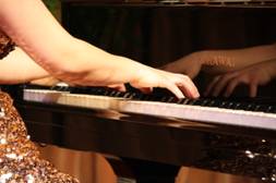 音乐会上半场,梁睿老师独奏了四首钢琴曲:德国作曲家韦伯的《邀舞》、中国作曲家黎英海的《夕阳箫鼓》、德国作曲家门德尔松的《随想回旋曲》、中国作曲家王建中的《山丹丹花开红艳艳》。四首风格迥异的曲子,被梁老师精彩演绎,感情表达酣畅淋漓。特别是《夕阳箫鼓》的高潮部分,梁老师用钢琴的语言完美再现了原曲的悠扬流畅。而演奏《随想回旋曲》时,有个身着紫衣的女孩竟情不自禁地挥动手中纸巾,跳起舞来。在跳跃着、流淌着、奔涌着的乐符中,听众们如痴如醉。