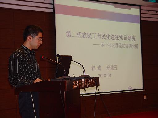 在学术论坛中,来自各个学校的研究生围绕西部农村问题从不同的角度入手,进行了发言,研究问题涉及二代农民工市民化问题、农民“小产权房”利益问题、国家与社会在中国农村社会中的实践形态问题、城乡教育问题、农村民间组织问题、失地农民维权问题等,并针对研究问题提出相关建议。我校硕956班王夏峥同学、程诚同学就城乡教育和农民工市民化问题做了发言。