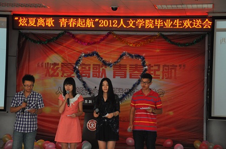 “炫夏离歌 青春起航”2012届毕业生欢送会在就业指导中心一楼大厅隆重举行。校就业指导中心副主任郑旭红,户外露出