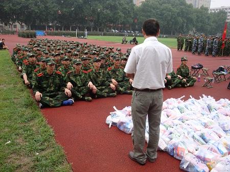 8月14日,2012级新生军训正式拉开帷幕。本次军训共持续两周左右,在这两周内,新生们要学习队列动作、射击动作、队形等实战训练,这是他们进入大学校园的第一堂课。为鼓舞学员们的士气,进一步提高新生们的训练热情,8月20日上午,户外露出