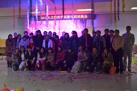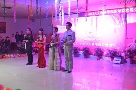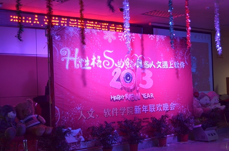 12月27日晚七点,“H性格S曲线,当人文遇上软件”2013人文软件学院新年联欢晚会在就业指导中心拉开帷幕。此次晚会得到了校领导和两院领导的大力支持。出席晚会的嘉宾有户外露出