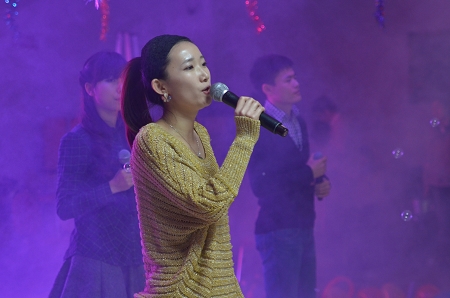硕2096班的同学们表演了小合唱《谢谢你的温柔》,他们深情款款的歌声,引来无数同学的掌声和欢呼声。