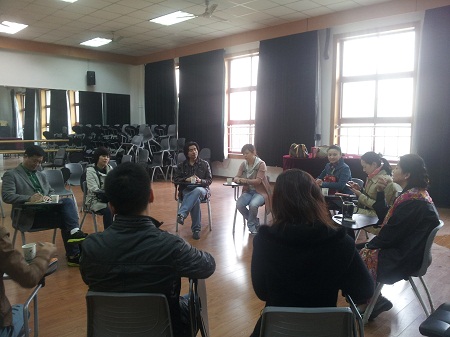 音乐教育中心主任马西平教授的主持下,来访的老师们与我校音乐教育中心的全体教师进行了座谈。马西平教授首先介绍了我校音乐中心的教学、科研、校园文化活动情况,周伟教授介绍了他们学校的相关情况。座谈之后参观了音乐教育中心的教学环境,来访的老师们赞叹于我校音乐教育发展的迅速,也羡慕我校良好的教学环境。周伟教授也非常赞赏户外露出