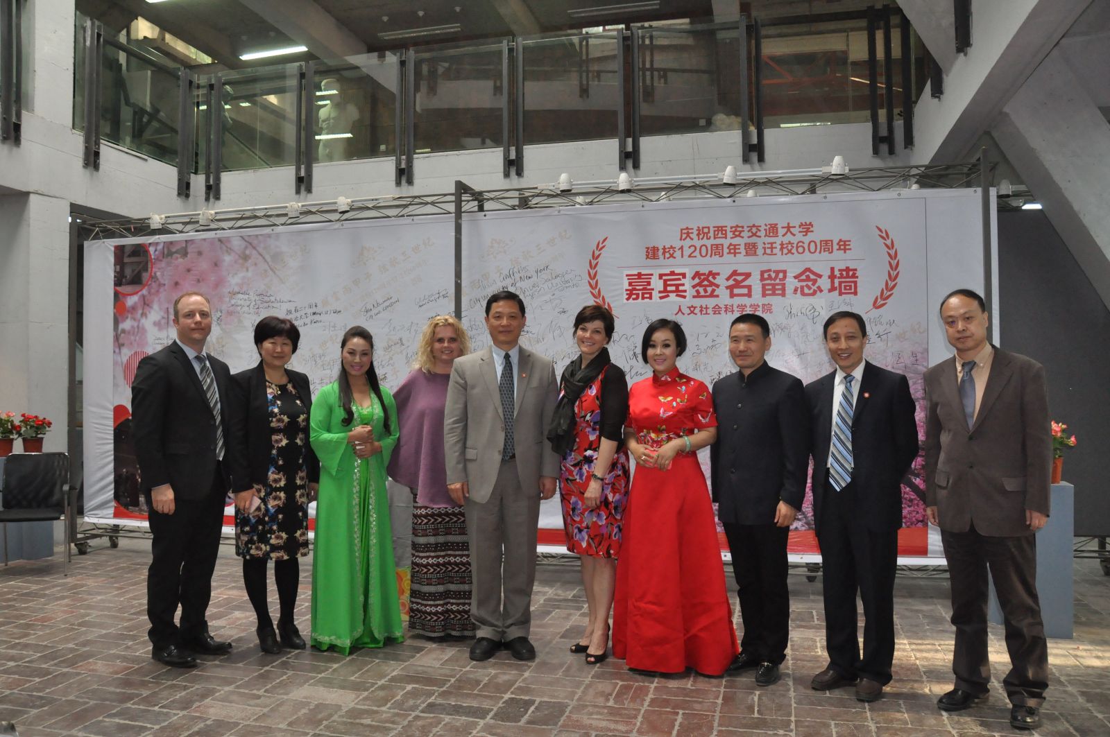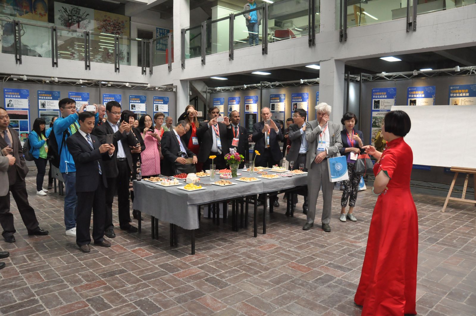 座谈结束后,师生们移步田家炳艺术小院,与闻讯而来的WC2高校成员及巴基斯坦前大使赛义德不期而遇。大家欢聚一堂,聚精会神欣赏了户外露出