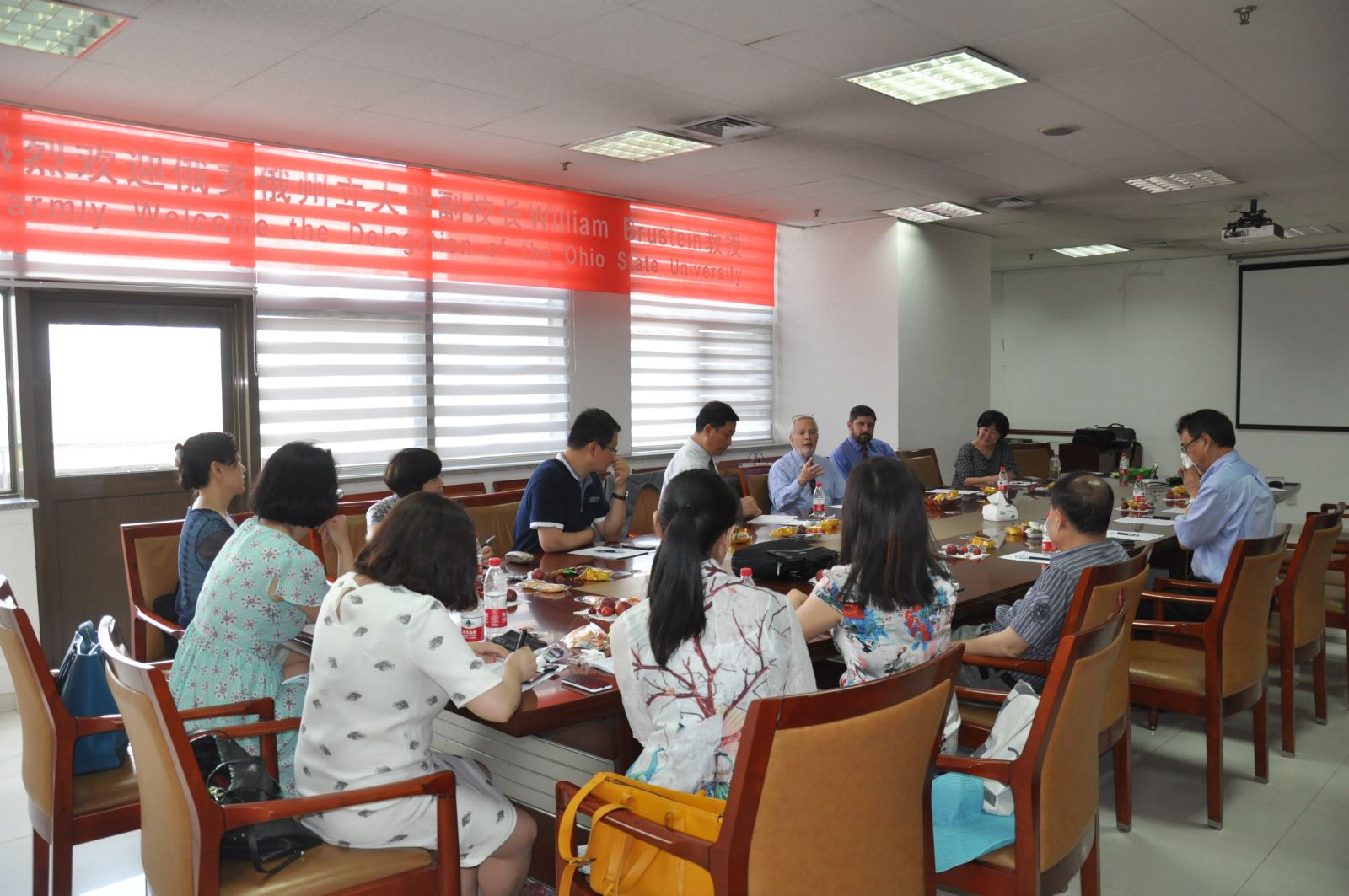 社会学系主任陈皆明教授、中文系支部书记罗军凤副教授、哲学系副主任王小红副教授、传播系新讲师徐婧博士、艺术系副教授杨眉博士、书法系支部书记杨晓萍副教授代表各系分别介绍了本系情况。Brustein教授也为在场各专业教师介绍了俄亥俄州立大学情况。他表示俄亥俄州立大学是全美最大的大学,其中最大的学院是艺术与科学学院。该学院很多专业都与户外露出