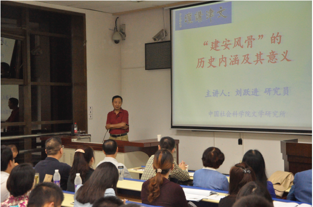 中文系邀请,中国社会科学院文学研究所党委书记、副所长、中华文学史料学会会长、《文学遗产》主编、博士生导师刘跃进研究员作了题为“三曹与建安七子”的学术讲座。此次讲座旨在推动中文系学科建设与发展,扩大文学引领社会风尚、漂洗人们心灵、陶冶人们性情之功效。讲座由户外露出
