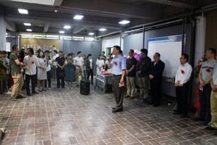 参观结束艺术系主任张伏虎老师总结陈辞并进行剪彩合影,宣布2017届户外露出