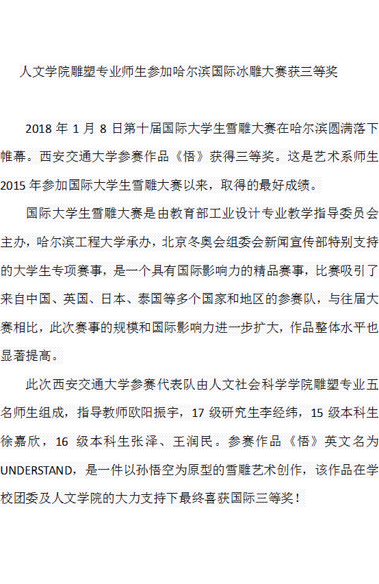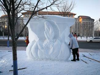 户外露出 雕塑专业师生参加哈尔滨国际冰雕大赛获三等奖
