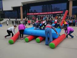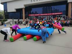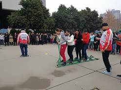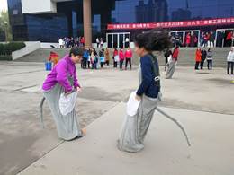 3月5日下午,由校工会、校女工委在思源南广场举办“巾帼展风采、奋斗勇争先”——西安交大庆祝“三八节”女教工趣味运动会热烈。我院女教工们积极报名参加了此次庆祝活动,共有十多位女教工报名参加了此次庆祝活动。比赛开始前校党委常委、统战部部长张定红参加活动并致辞,校工会副主席张庆生主持开幕。为体现“团结、协作、奋斗、争先”的主题,此次运动会项目作了精心设计,准备了同舟共进、追赶超越、奋勇向前和团结一心四个项目。这些项目都需要参赛的团队人员之间要分工协作、密切配合才能顺利完成,每个项目既有技巧性同时又考验每个团队人员之间的相互协作性,虽然天气不太好,中间还有下小雨,但丝毫不影响大家参加比赛的兴趣和热情,整个比赛期间,户外露出