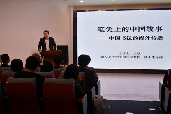 周斌教授开场即以“回到母校”一语表达了对交通大学122周年校庆的诚挚祝愿,在之后近两个小时的精彩讲授中,传达给全场师生“中国书法不只是记录文字的工具,更是通过美丽线条表达美好情感的艺术,它具有普世性,值得我们向全世界传播”的坚定理念。