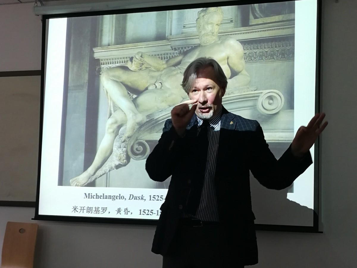 本次讲学以《米开朗基罗和西方艺术哲学》为课程题目,课程安排共32课时。4月23日上午首次课程在我校兴庆校区中二-2205教室开讲,课程吸引到校内外数十名师生前来上课。在课堂上,弗朗切斯科•奥西拉院士以米开朗基罗经典艺术作品创作背景为切入点,和大家一起探讨艺术创作与西方艺术哲学的关系。奥西拉院士授课风格幽默风趣,采用互动式教学方法,课堂气氛活跃,首次课程在非常轻松、愉快的气氛下圆满结束。该课程全程以英文教学,配有中文翻译,课程安排在本学期第9-12周周一上午四个课时、周四下午四个课时集中授课,地点:中2-2205教室,欢迎全校师生前来学习交流。