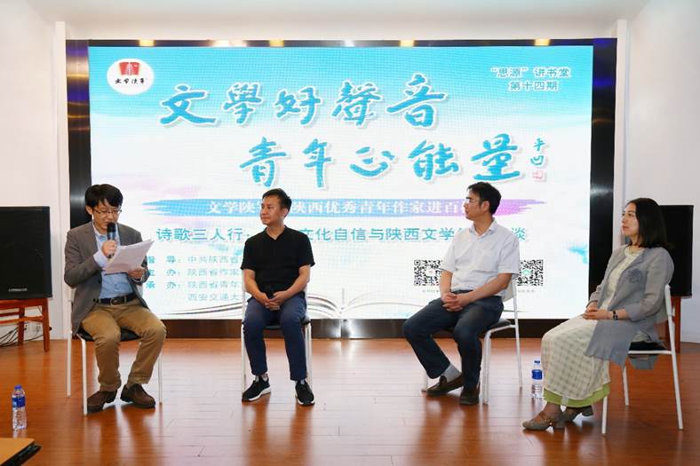 中文系和教职工读书协会协办,搭载思源讲书堂文化交流平台,以“诗歌三人行·民族文化自信与陕西文学传统漫谈”为主题展开。到场的三位主讲人分别是:中国作协会员马慧聪(陕西省青联委员,陕西省作协理事,《延河》下半月刊主编),中国作协会员马召平(陕西省作协理事,高级记者,陕西广播电视台新闻评论部副主任),中国作协会员宁颖芳(陕西省作协理事,咸阳市作协副主席,《秦都》杂志主编)。陕西省青年文学协会常务副会长王琪,陕西省青年文学协会副会长杨枫、张雅颉,陕西省青年文学协会副秘书长马妤,陕西省青年文学协会办公室主任孙毅超,户外露出