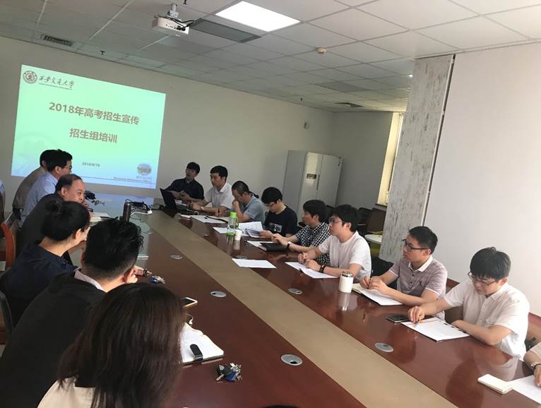 领导班子对湖南省高考招生工作的高度重视,强调在招生过程中,各位招生老师要提前学习招生政策和宣传技巧,在最短时间让学生与家长了解交大。在现场招生宣传环节,要采集足够多的考生信息,热情服务、积极沟通,为交大吸引更多的优秀生源,在今年湖南高考招生中取得优异成绩。接下来张科副组长介绍了2018年湖南招生具体工作计划,分析往年招生数据,详细安排各片区具体负责老师。然后请曾经多年参加过招生工作的老师大会,交流分享经验。