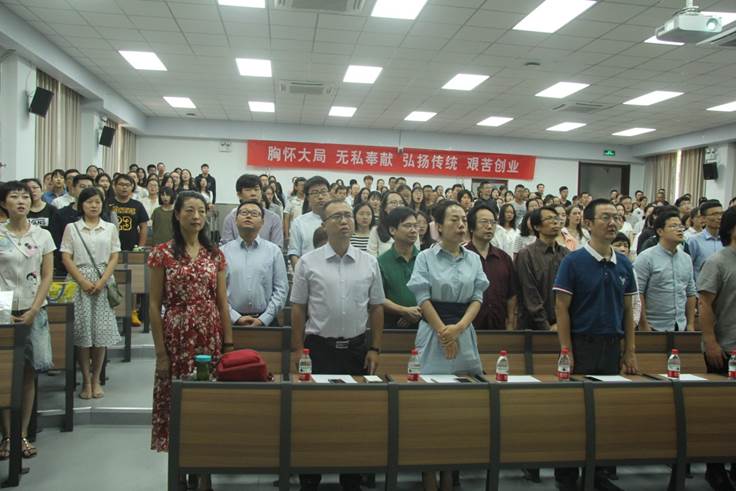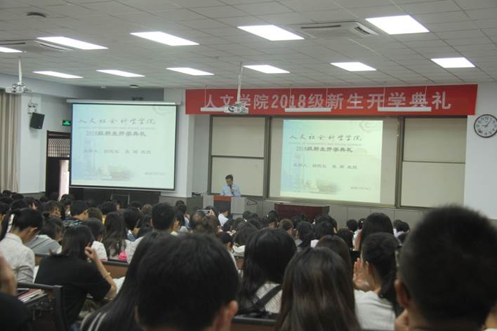 院长李黎明,副院长张顺、王伟、张勇,党委副书记王劲,崇实书院院务副主任张丹,宣传部主任陈晨,学院各系所领导、老师,行政老师,各班班主任,2018级全体新生参加了新生开学典礼。此外,学院还特邀“迁二代”徐正红副教授为大家讲述西迁故事,活动由户外露出