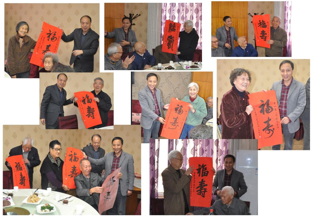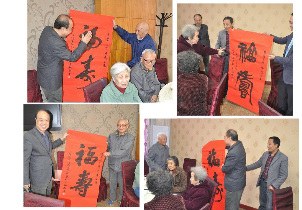 全体师生,向每位老同志赠送了学院王劲副书记题写的“福寿”书法作品一件,祝愿老同志们身体康健,生活愉快,幸福安康。