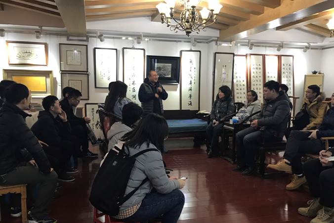 11月15日晚7点,第9期“真人图书馆”在书院门国根笔庄书香四溢的陈列室中拉开序幕,二十余位老师和同学一起认真聆听了雷亿锋掌柜关于文房四宝的讲解。活动由户外露出