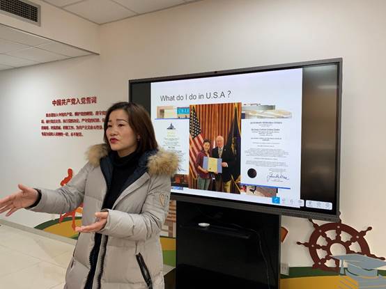 音乐教育中心老师梁睿,2016-2018年在巴菲特的母校——内布拉斯加大学林肯分校的孔子学院学习工作,她分享了个人的音乐学习经历,介绍了在孔子学院四方面的工作开展情况,分享了形式多样的中外文化融合体验给她留下了深刻的印象。
