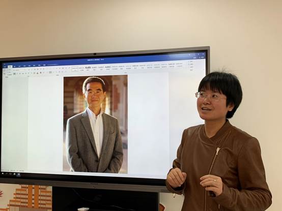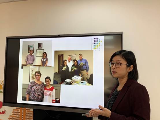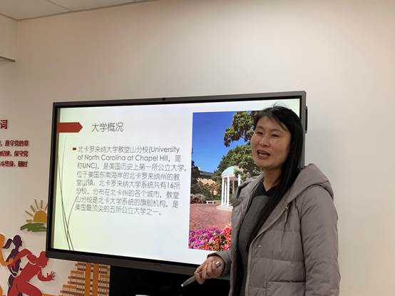 书法系教师杨晓萍,2018年度访学北卡罗来纳大学教堂山分校,访学期间的合作导师是萧丽玲教授,研究方向为中国画、中国戏剧、中国印刷文化。她介绍了锦绣学习的主要内容和在各大图书馆、各大博物馆,借阅古籍、阅读珍藏版学术资料的宝贵记忆。