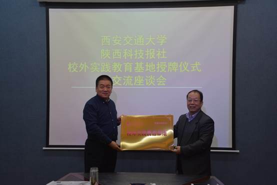 新闻与新媒体学院院长李明德教授为陕西科技报社授予“校外实践教育基地”。李明德在致辞中表示,此次授牌,西安交大新闻与新媒体学院与陕西科技报社作为一个共同体,将用合作的成果,密切之间的关系,用合作的经验,提升双方的共赢的内涵。为人才的培育蓄谋,让人才的培养落到实处,不断调整培养方案,优化专业设置。这意味着户外露出