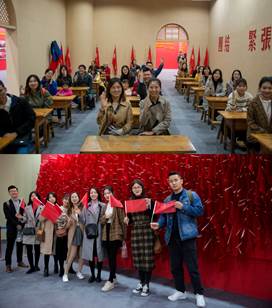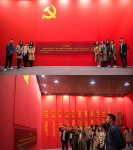 在自由参观环节,面对党旗,同学们自发的举起右拳庄严宣誓,“我志愿加入中国共产党,拥护党的纲领,遵守党的章程,履行党员义务,执行党的决定,严守党的纪律,保守党的秘密,对党忠诚,积极工作,为共产主义奋斗终生,随时准备为党和人民牺牲一切,永不叛党。”对祖国对党对人民的承诺再一次铭记于心。面对墙上一面面的小国旗,大家满心欢喜的拿起笔写下了对祖国的祝福,我爱你中国、祝福祖国繁荣昌盛、希望早日实现伟大复兴的中国梦。每一份祝福都代表了我们对祖国母亲深深的热爱。