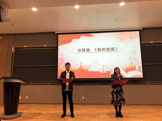 选手演讲完毕,由电气工程学院的王若兰和杜一鸣为大家献上了一首诗朗诵:《我的祖国》。他们用激情饱满的朗诵向祖国母亲表达了真挚的热爱与赞美,将现场情绪又推上一个新的高潮!