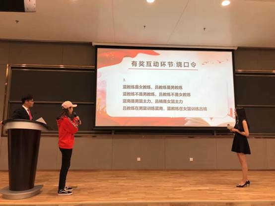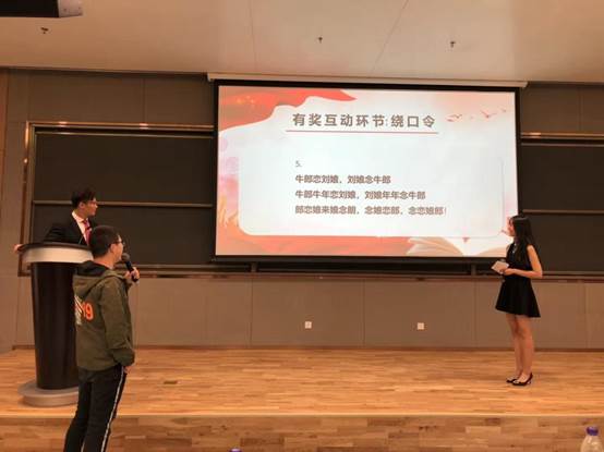 为了活跃气氛,让选手和观众放松自己,现场还设置了互动环节——绕口令。现场观众积极踊跃参加。有的实力不俗,快速流利念完一整段绕口令;有的则博得大家一笑,在舞台上留下了欢乐。