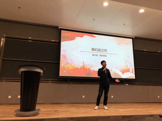 七十年物换星移、岁月如歌;七十年砥砺奋进、铸就辉煌。为喜迎新中国成立七十周年,“青春告白祖国”演讲比赛决赛于10月27日在创新港成功举行。经过10月13号到22号的前期宣传准备,初赛共有来自电气、材料、人文、外国语四个学院的40名同学积极参与,并递交了演讲视频。经过评委会的严格筛选,共有12名同学进入了决赛。在决赛中,12名选手以“青春告白祖国”为主题,紧扣“不忘初心、牢记使命”主题教育,从自身体验出发,以真切饱满的情感告白祖国。