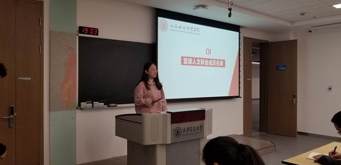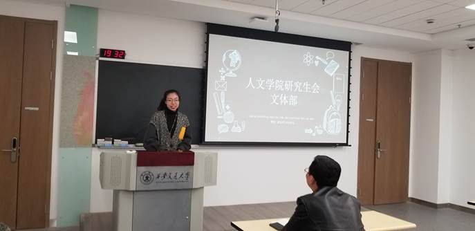 宣传部部长宋京恩介绍了分别来自社会学、国画、社会工作、视觉传达与设计、文艺学、哲学的七位部员,希望宣传部通过实用技能培训、创新宣传内容与方式,做好户外露出