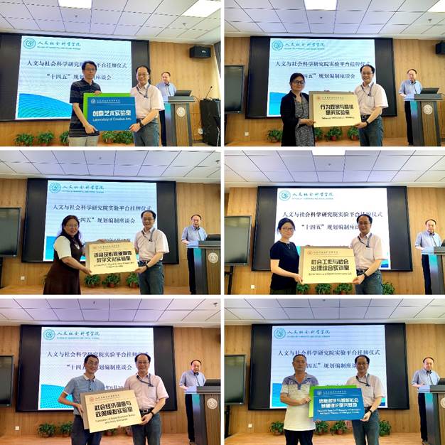 挂牌仪式上,柴渭向人文研究院各实验平台负责人授牌,和学院教师共同为实验室挂牌。