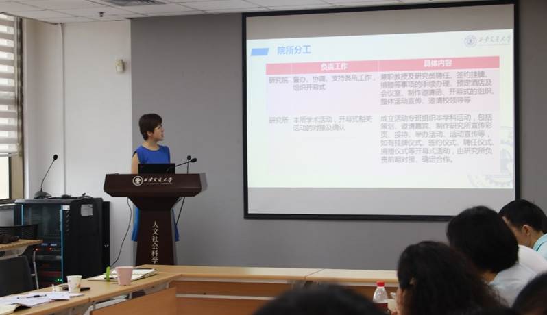 分管副院长王伟在会上做了研究院“科创月”推进情况专题汇报。目前人文与社会科学研究院策划了开幕式+各学科学术活动共五项活动,均进入最终确定嘉宾、草拟活动议程的阶段。王伟对具体工作做了细致安排,并下发工作落实清单,根据8月20日后墙不倒的要求,倒排工作时间,对各所、各筹备工作组进一步细化任务、明确分工、准备预案,并按照时间节点落实各项工作提出了具体要求。
