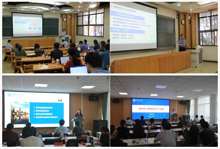 大学肩负着人才培养、科学研究、社会服务、国际交流合作等重要使命,其中人才培养是大学的基本使命。针对这一主题,学院邀请了教务处副处长兰剑、杨建科,研究生院培养办公室主任程洁、国际合作与交流处副处长韦学勇,分别介绍了我校人才培养工作。