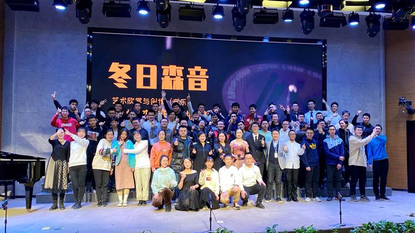 教二1400丝路大讲堂上演。这是钱学森班《艺术欣赏与创作(音乐)》2020秋季课程的结课汇报演出。钱学森班的同学们是户外露出