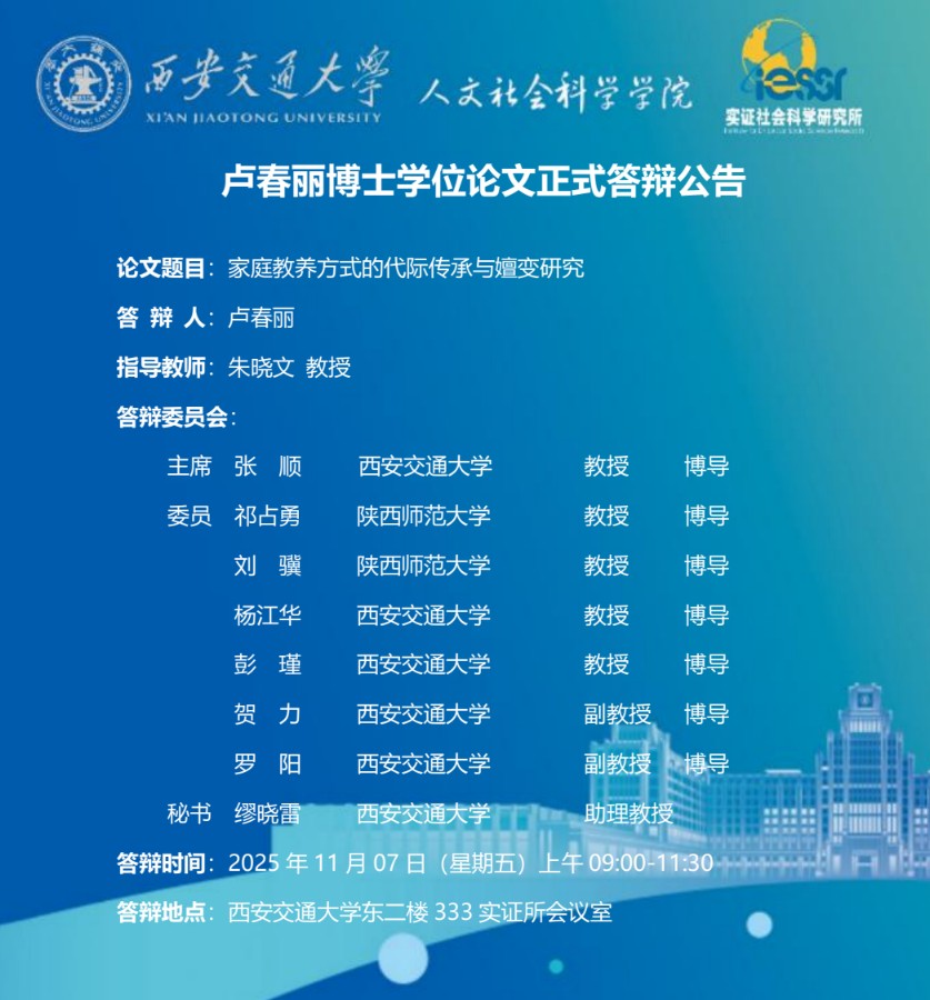 卢春丽博士学位论文正式答辩公告