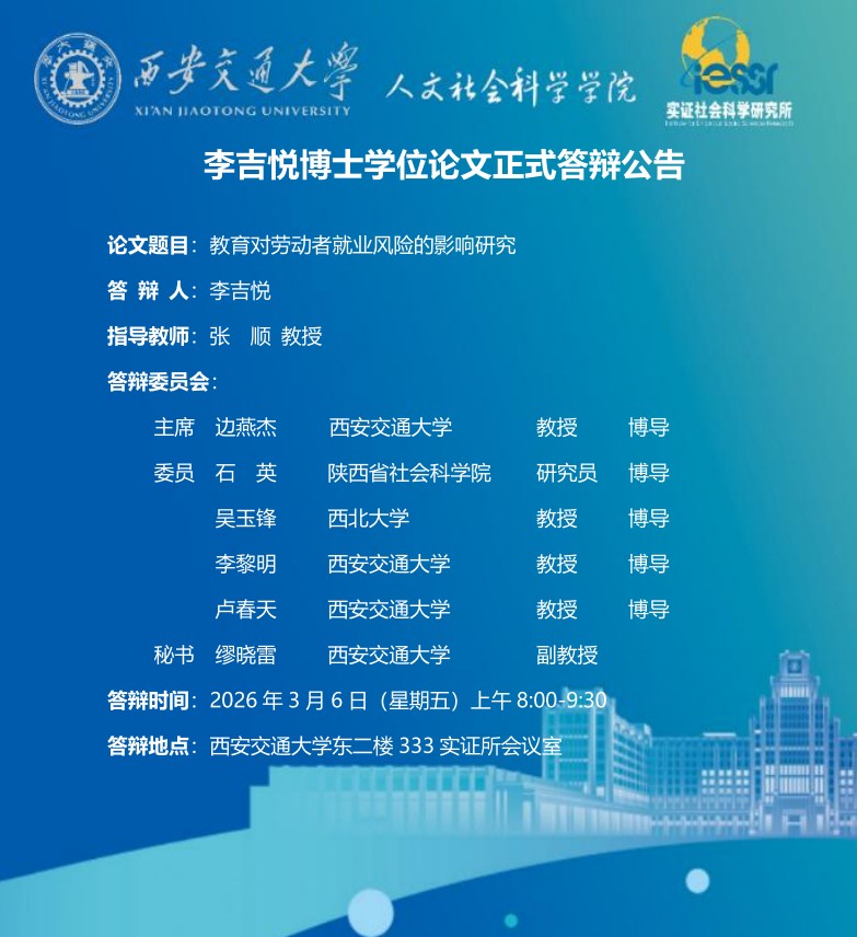 李吉悦博士学位论文正式答辩公告